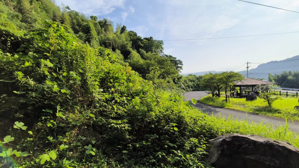 現在は公園というのか東屋が一つ置かれている広場のようになっており、遺構らしきものは残っていないようです。笑隈城の案内板があるのでなんとか城跡だったんだなと感じ取れます。
