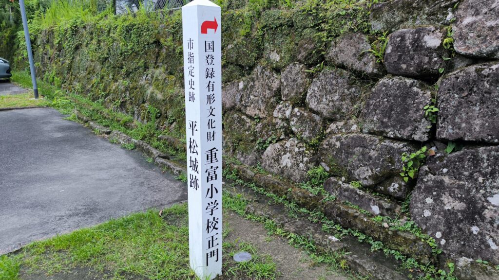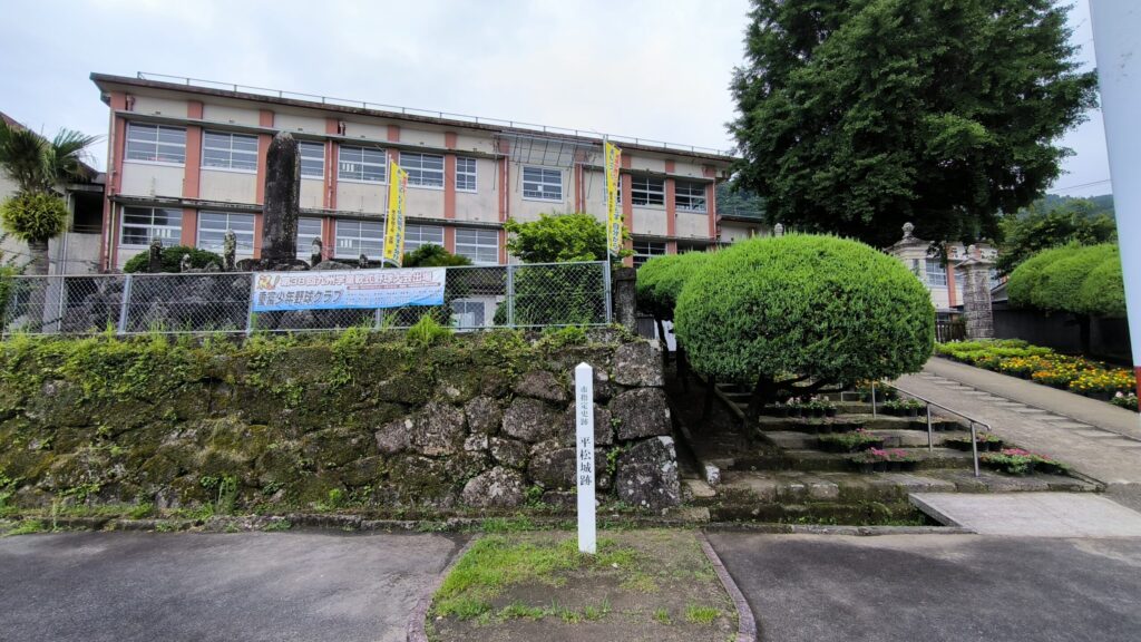 江戸時代中頃から明治維新まで平松城は越前島津家のお城として使われ、現在は重富小学校となっています。