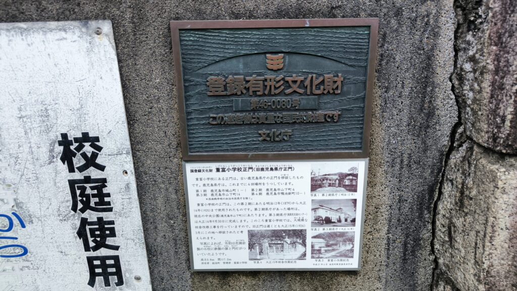 お城とは関係ないですが、この小学校の正門が元々は鹿児島県庁の正門だったみたいです。