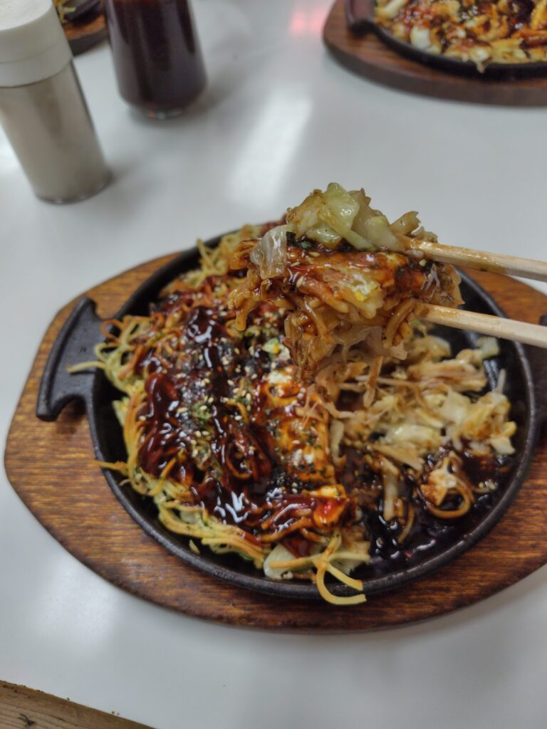 たしか・・・ちゃんぽん(ごちゃまぜ)のお好み焼きですわ(。◕ˇдˇ◕。)/