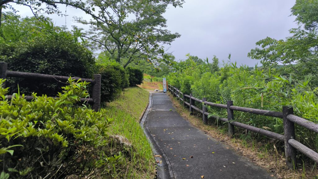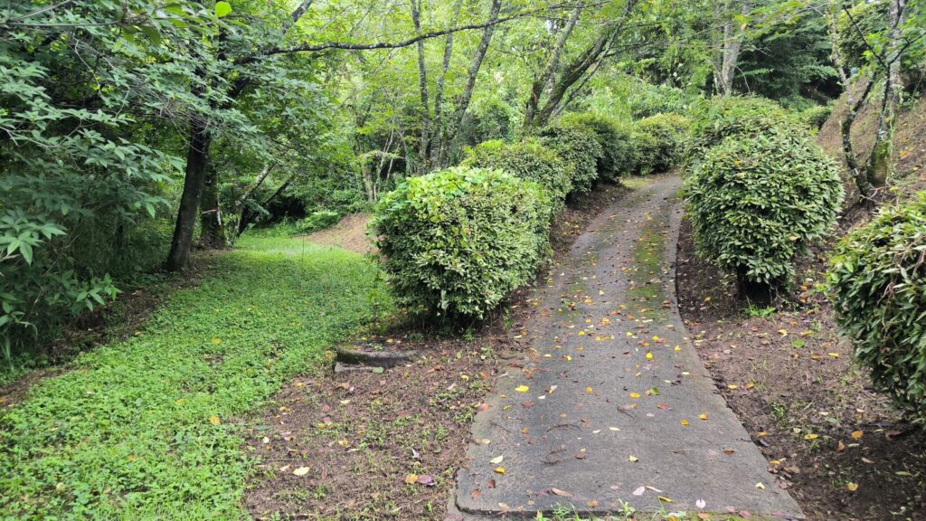 とりあえず駐車場に車を停めて歩いて行きます。坂を登っていく感じですね。