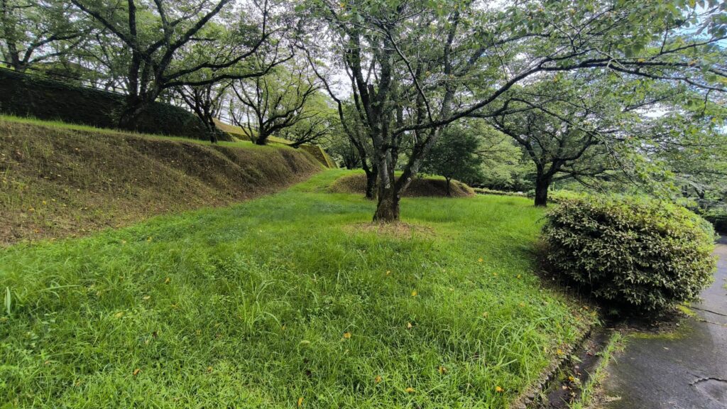 土塁か切岸のようで違うような?曲輪のようにも見えるのですがただ公園整備しただけ?どうなんでしょうか??