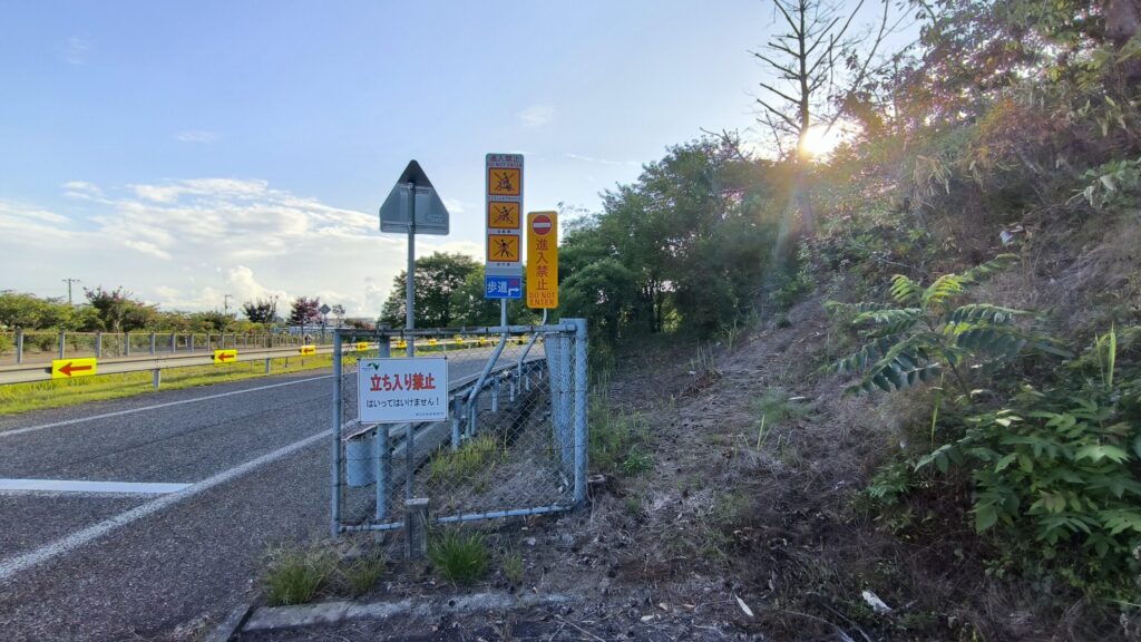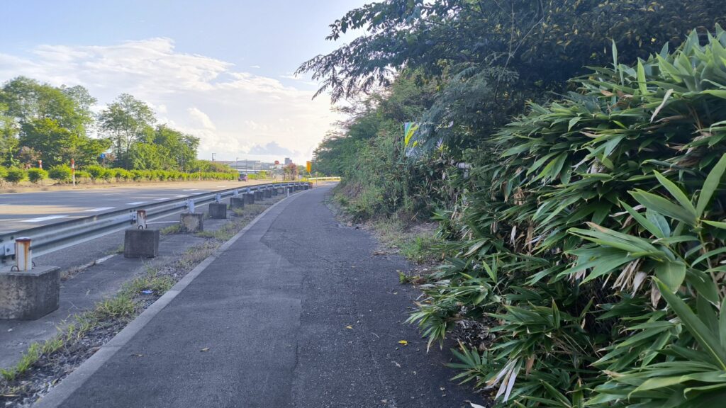一応、歩道があるので高速道路のインター方面へ歩いていきます。