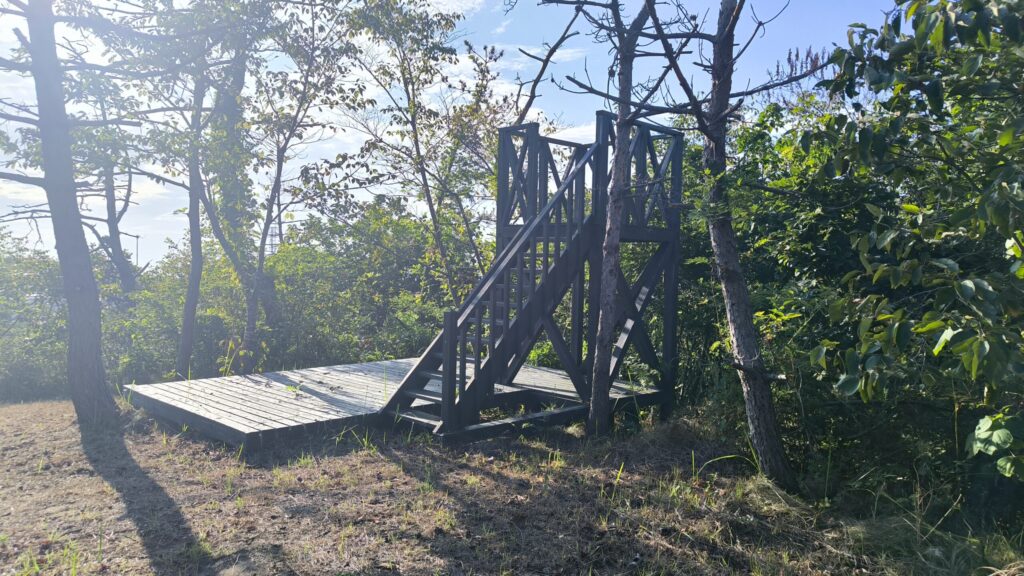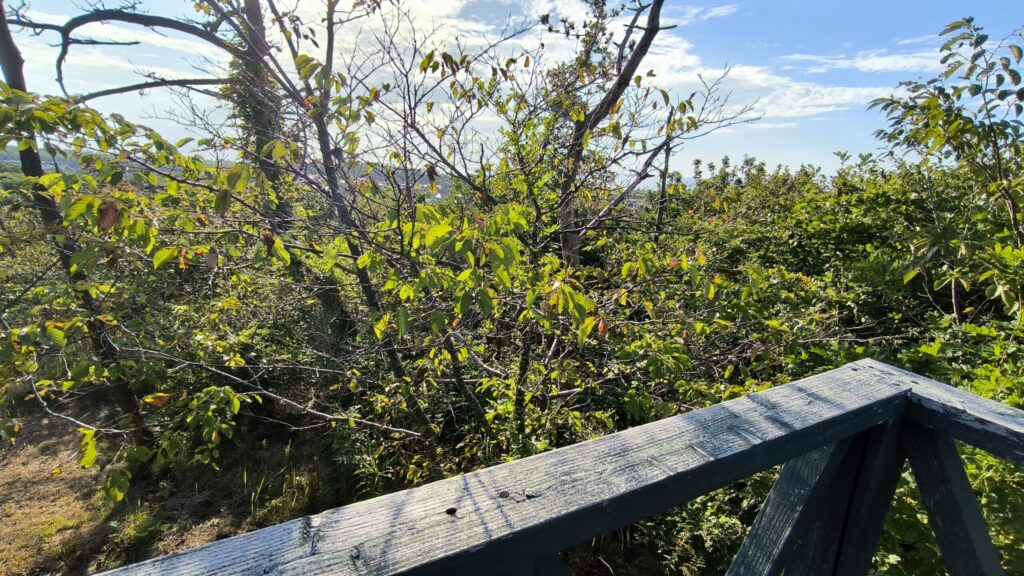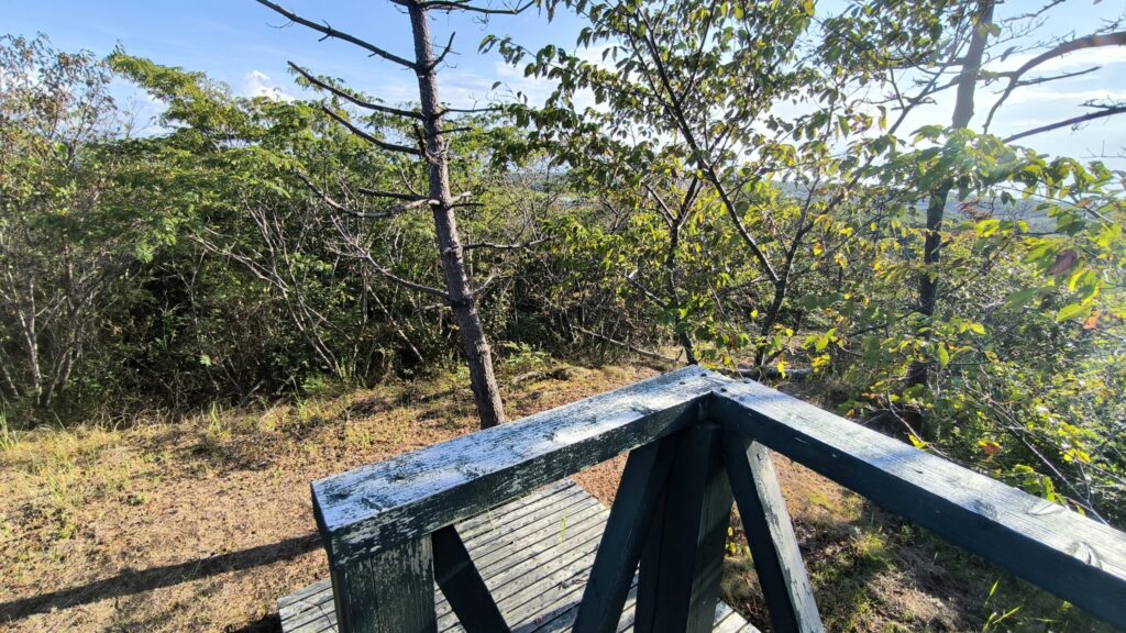 何も見えんっ!!周りの木よりもだいぶ低いよ!もっと高い展望台作ってほしいですね😭