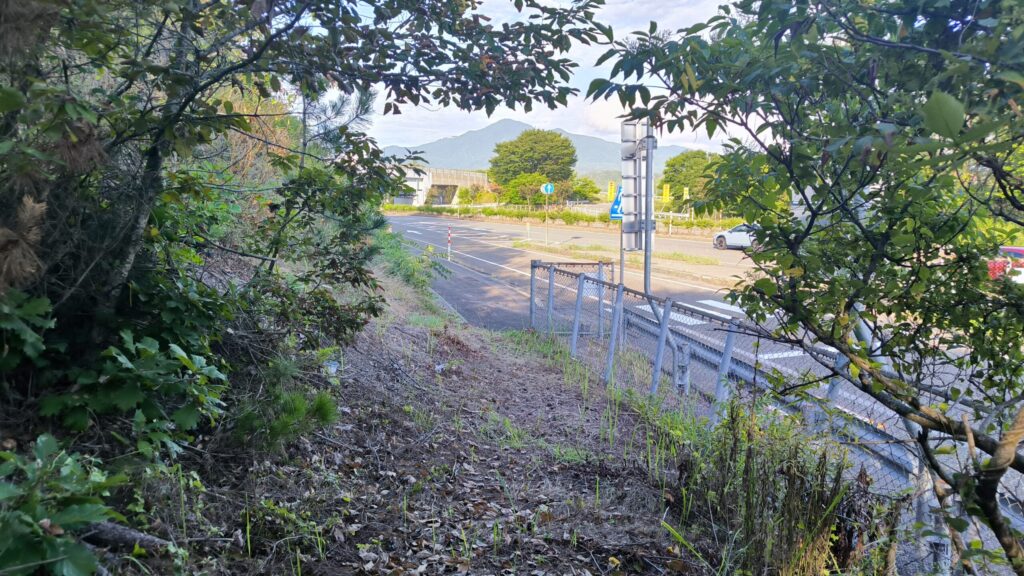 画像左側の道路は高速道路のインターチェンジ出口です。こんなところに人が立ってるのがめずらしいのか減速してこっちを見る車が多くて少し恥ずかしかったです笑
