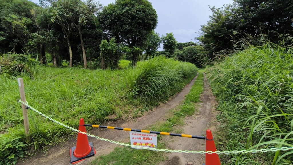 入っちゃいけないのかと思いましたが、車両侵入禁止で立てられているようです。不法投棄する輩がいるのでこのようになっているみたいですね。人が歩いて入る分には大丈夫なようです。