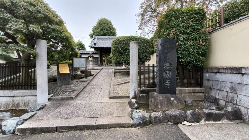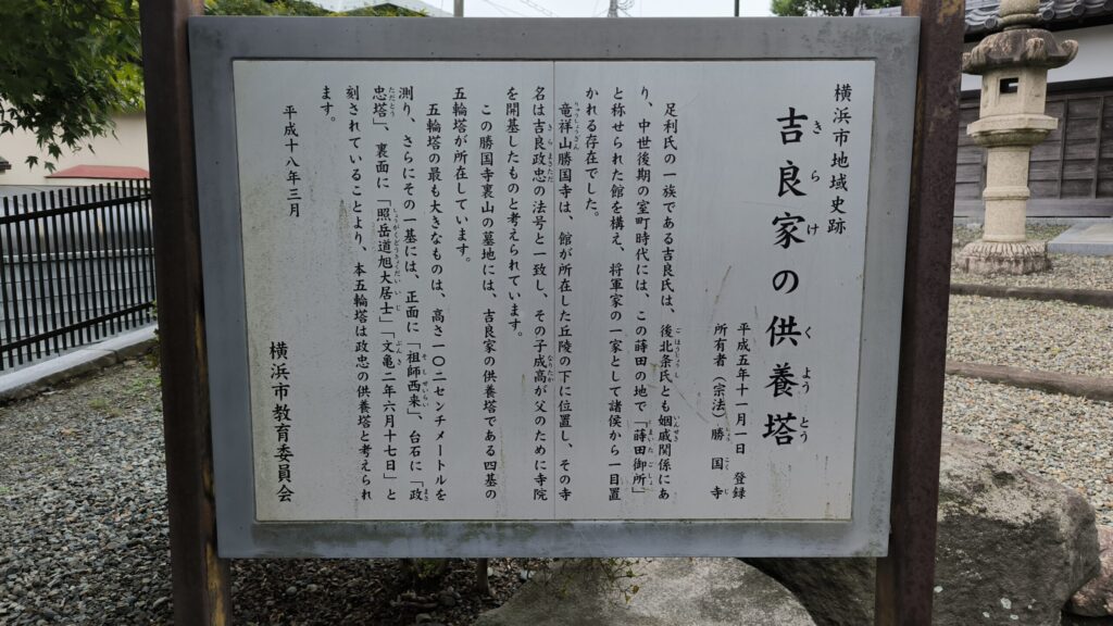 入口を入ったところに「吉良家の供養塔」の説明と「吉良氏の館跡と勝国寺」の説明版がありました。