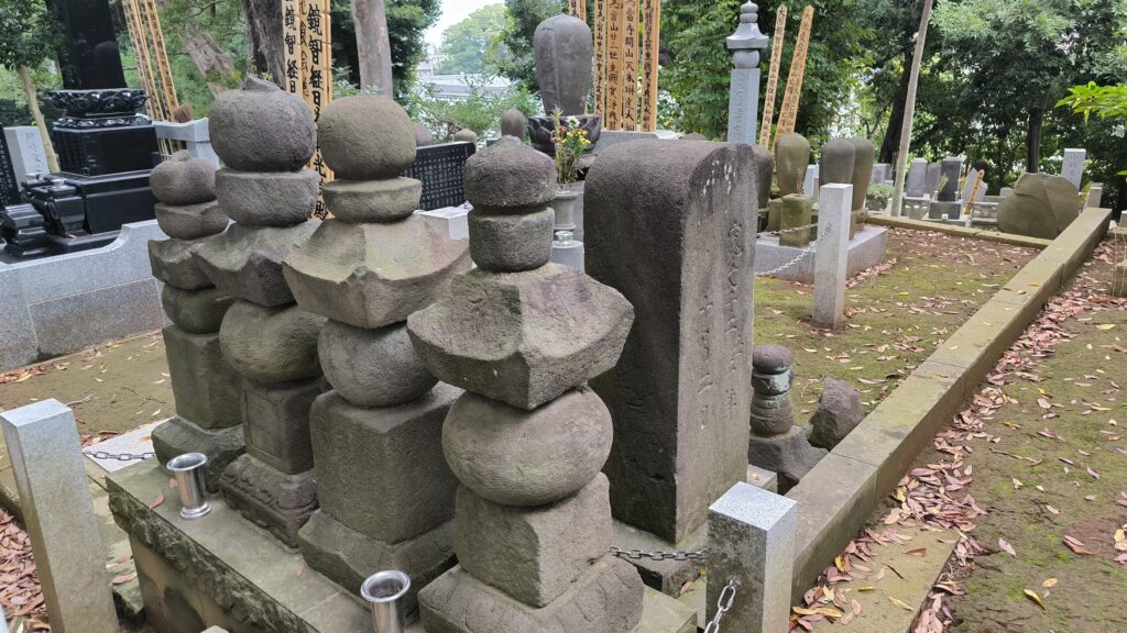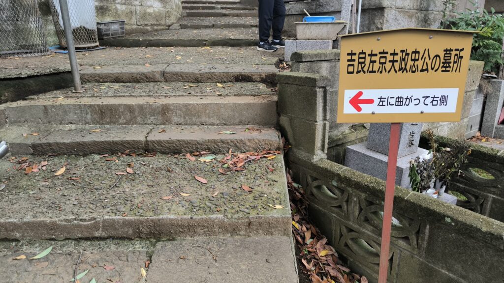 ありました!吉良家の供養塔の標柱が。後ろの四塔が吉良家の方のだと思いますが、具体的に誰のなのかは説明がありませんでした。