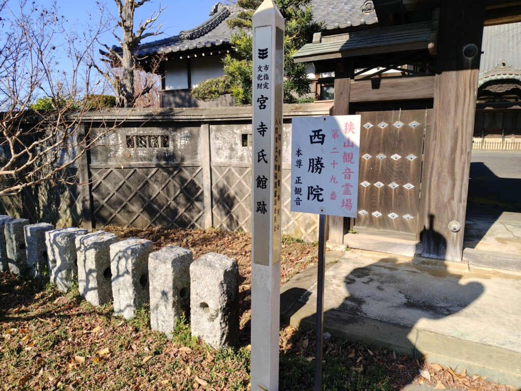 現在は西勝院(さいしょういん)の境内地となっており、外堀はが四方にあり内郭の堀跡・土塁の一部がある様です。土塁の外側に沿って狭山丘陵からの沢水を利用した水堀が館を囲っていたみたいです。