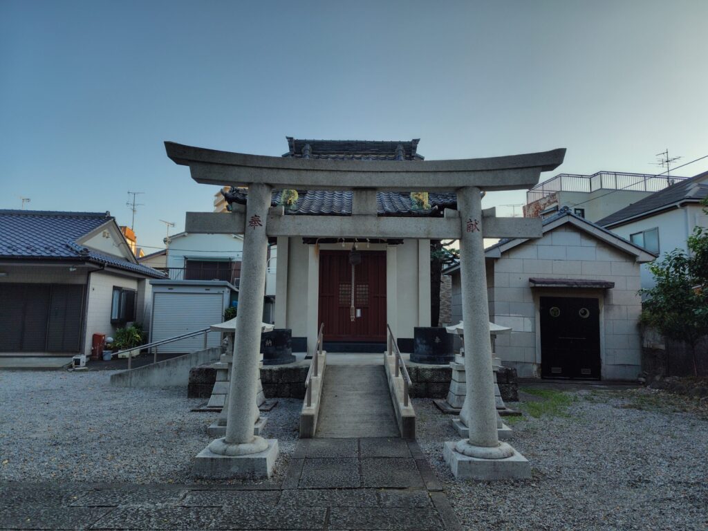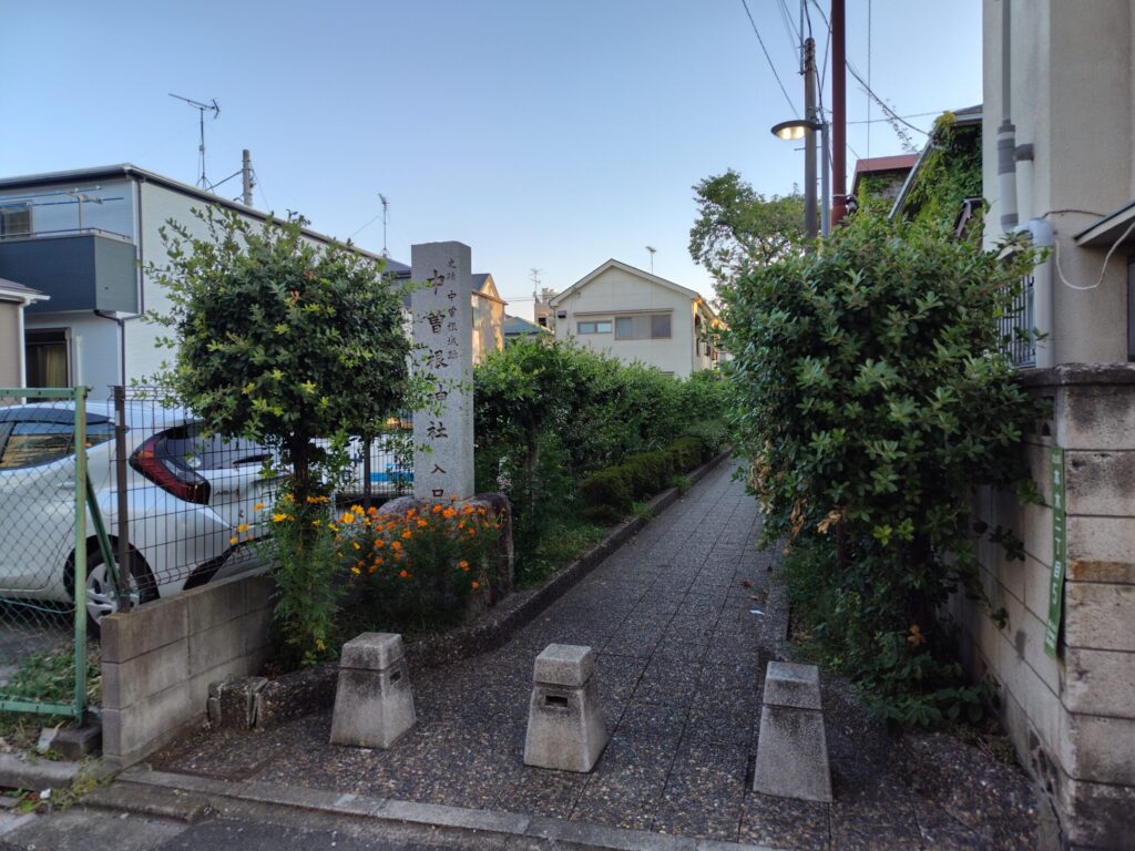 道路から外れると細い住宅地の路地になっていますので、住宅地に入る手前の有料駐車場にクルマを停めて歩いて進んでいきます。するとすぐに『中曽根神社入口』のあるので直ぐにわかると思います。