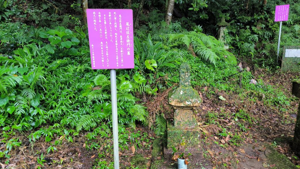 尾辻佐左衛門は島津尚久(しまづなおひさ)の家臣とされている人物で、島津尚久の墓の隣にお墓があります。尾辻佐左衛門がどのような活躍をした人物なのかは調べてもよくわかりませんでした。