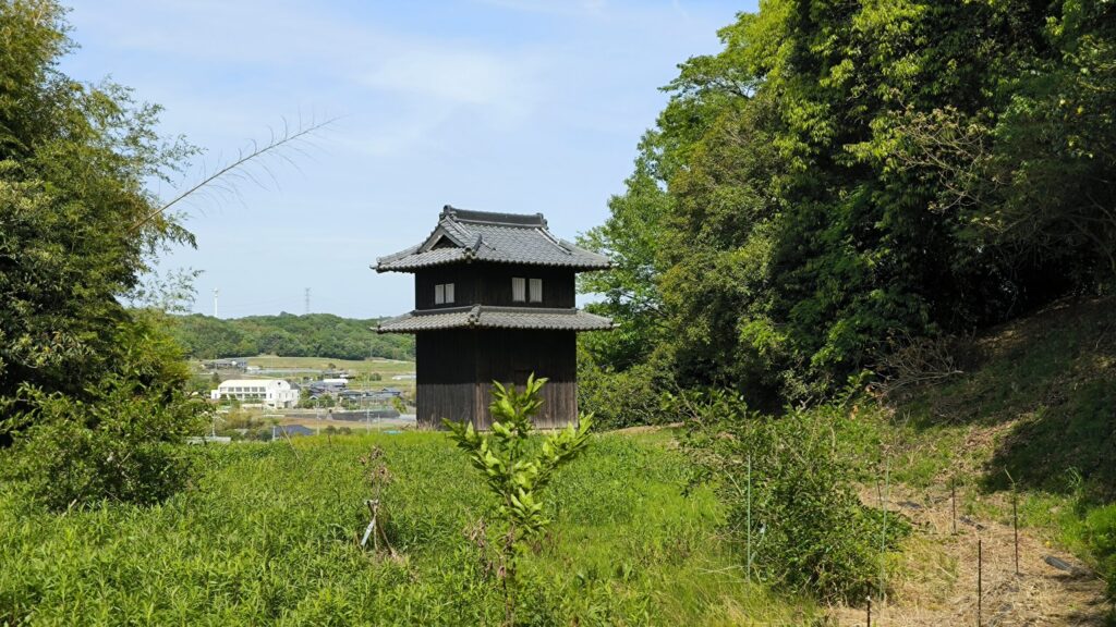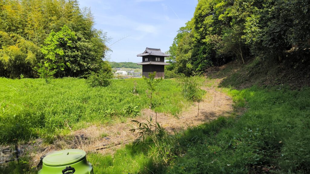 櫓に到着!なんか倉庫か何かになっているようですがよくわかりませんでした。入れる感じではなかったですね。