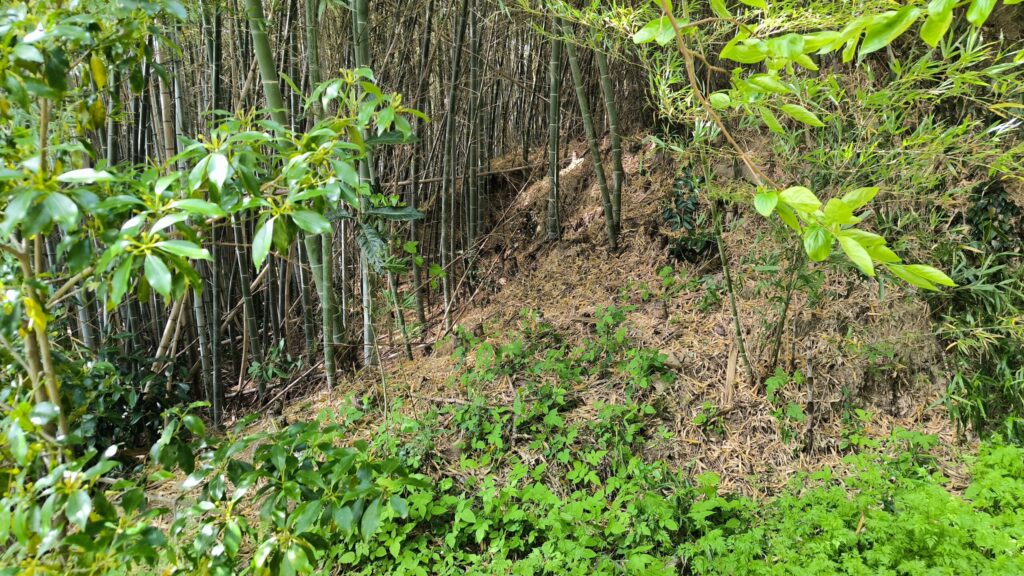 土塁や切岸っぽく作られているように見えますが竹藪になっていて入っていくのは難しそうです。