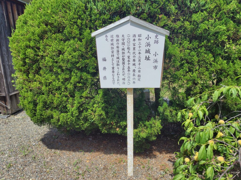 現在小浜神社の境内となっている所が本丸らしく、本丸を取り囲むように北の丸・西の丸・南に二の丸・東に三の丸を配していたとされています。