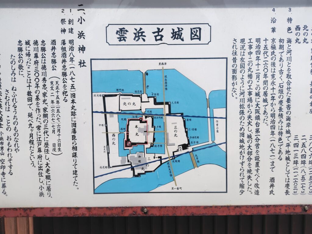 小浜城は『こはまじょう』ではなく『おばまじょう』って読みます!やっぱ日本語は難しいぃぃぃぃぃ~(´;ω;`)ウゥゥ また、別の名を『雲浜城』と云い『うんぴじょう』って呼びます! やっぱり難しいぃぃぃぃぃぃぃ(;゚Д゚)