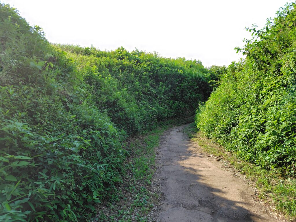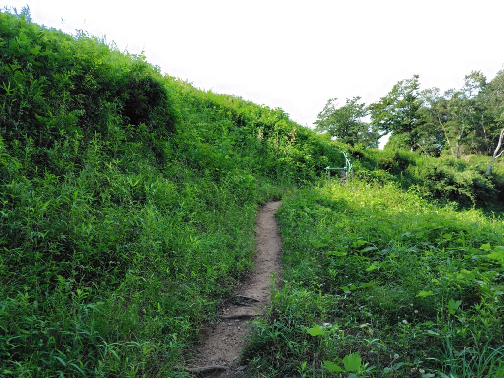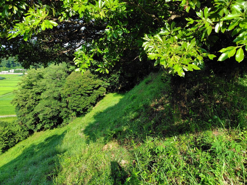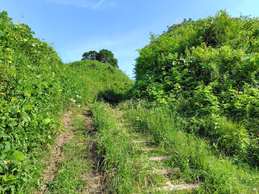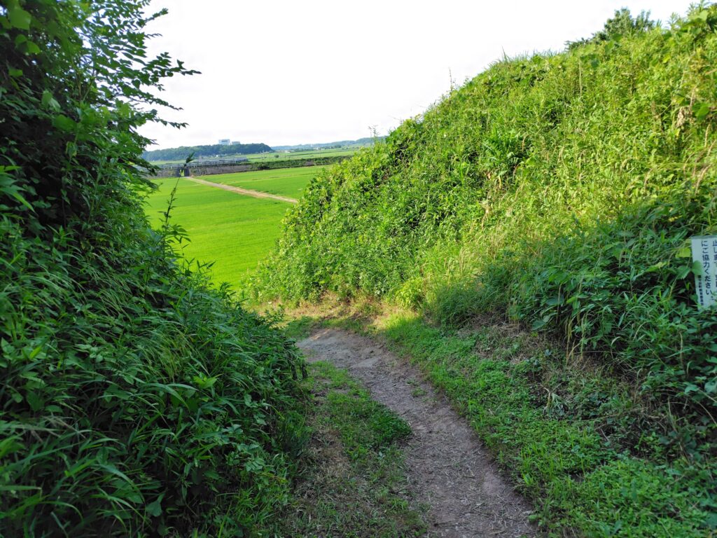 城に侵入すると右手側にめちゃめちゃ高い土塁が築かれています!