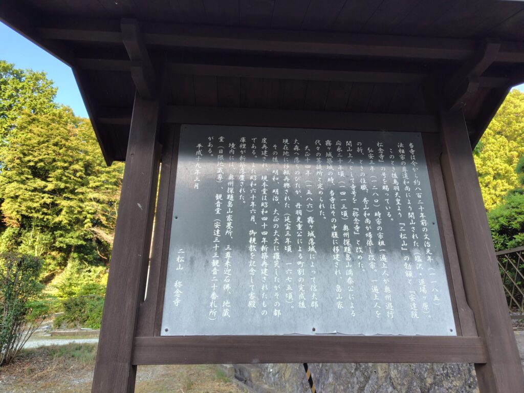 二本松城(霧ヶ城)の麓、道場谷(丹羽氏二本松城三の丸)に1185年 法相宗の尊道和尚により開山された称念寺があります。1413年頃に畠山満泰が二本松城(霧ヶ城)を築城させると、その中腹に称念寺が移築され畠山家の菩提寺と定められた様です。