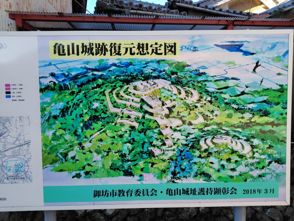 亀山城の麓にある『丸山中央集会場』に『亀山城跡復元想定図』がありました(●^o^●)