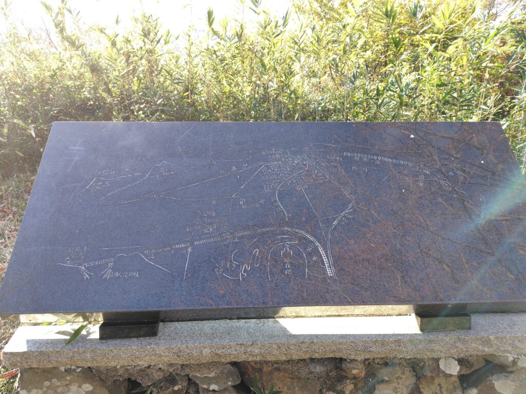 亀山城は日高平野を一望できる亀山の標高122mの山頂に築かれており、本丸を中心に円状に複数の曲輪を要している山城で、当時はなかなかの規模だったんじゃないかと思われます。(現地にあった『亀山城跡復元想定図』を見る感じそんなんだったんです)