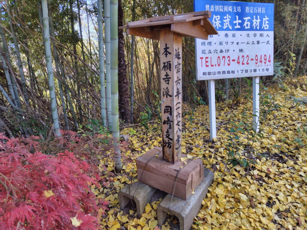 行ってみましたが、『本願寺別院岡崎坊』が岡崎土橋城跡の可能性が高く、今では城らしい構造は残っていません。雑賀衆だし当時は『寺=城=居城』であったんではないかと思われます。