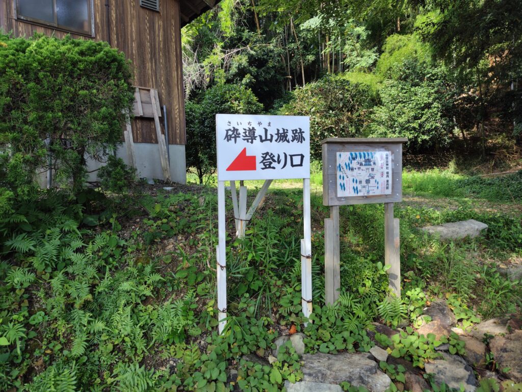 砕導山城は佐伎治(さきち)神社の裏手に築かれた山城です。佐伎治(さきち)神社から砕導(さいち)山城って名前になったんっすかね? それだったらかなり無茶あるよなぁ~((´∀`))ケラケラ