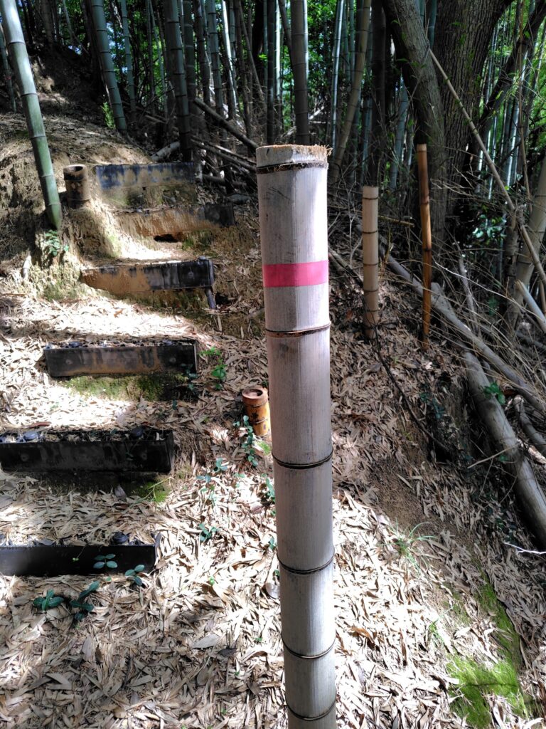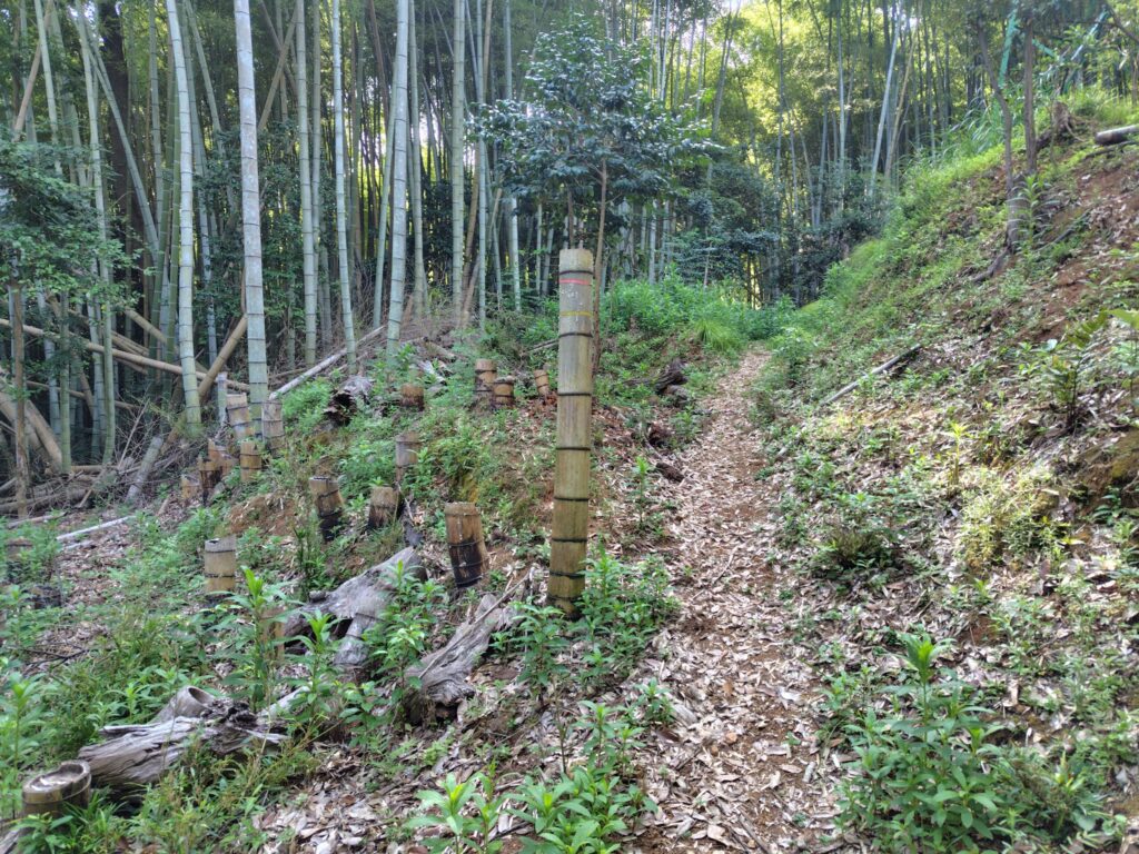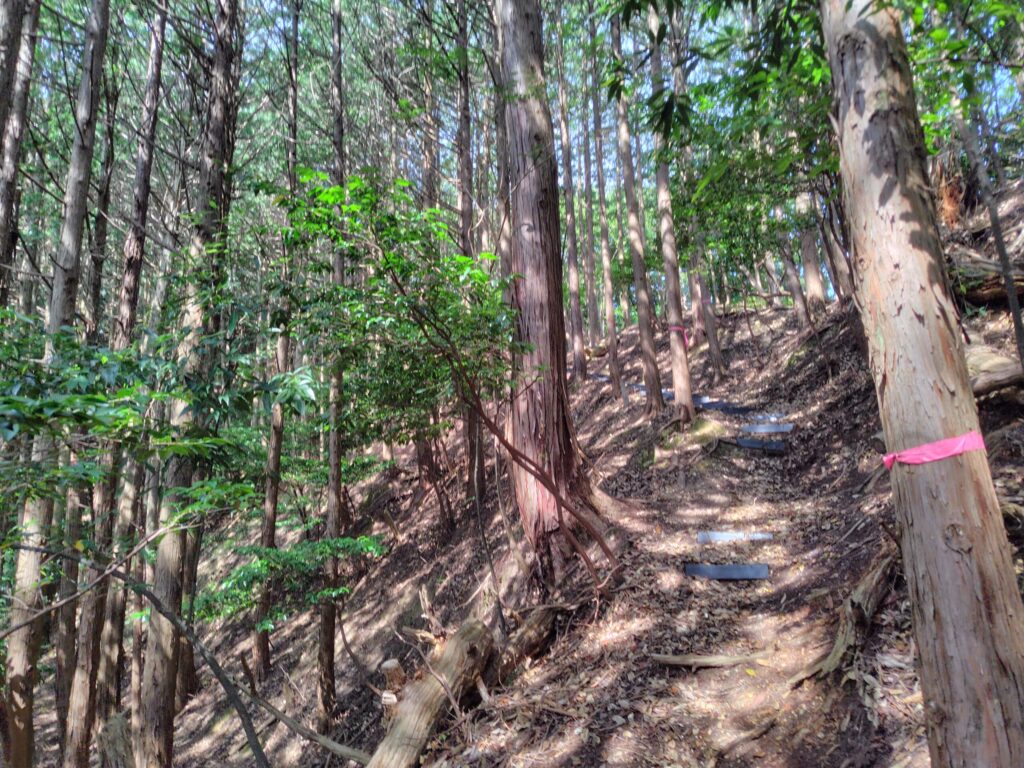 ピンクのテープを頼りに何とか下山できました。しかし、全然違う場所に下山してしまいました!