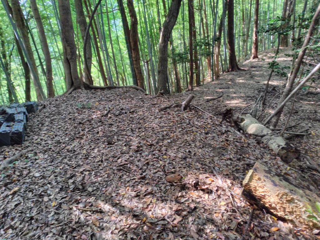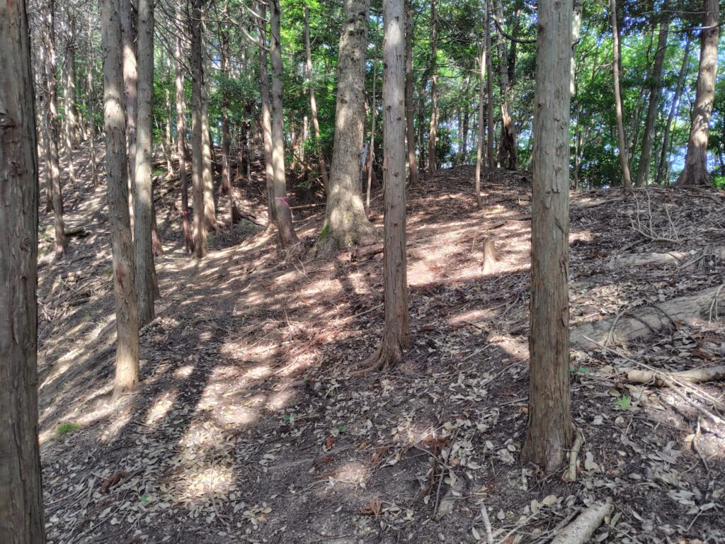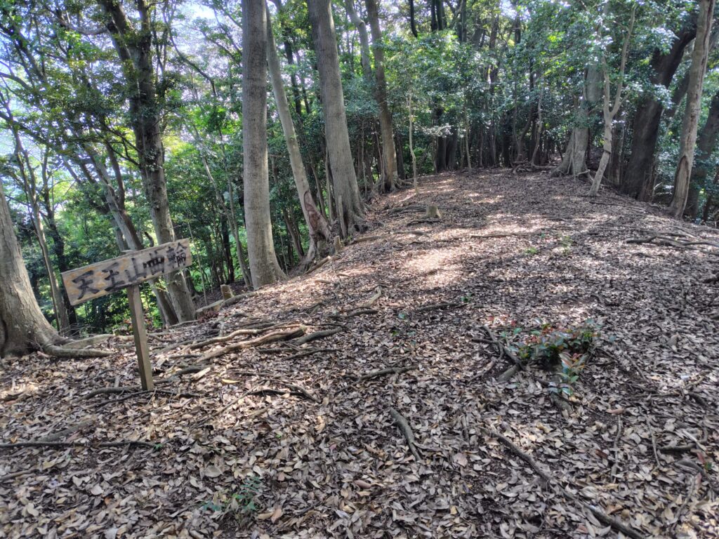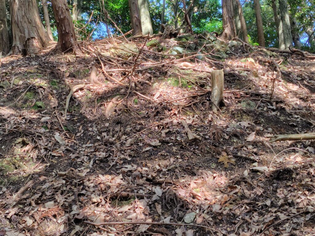 草で覆われてわかりずらいが、この辺は小さな曲輪が連続して築かれており天王山と云われる場所だと思われます。