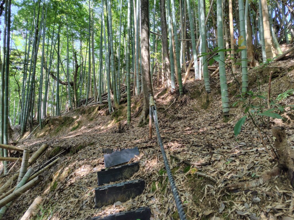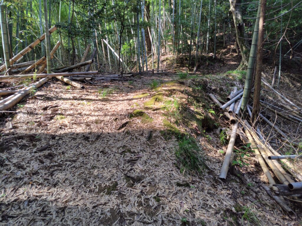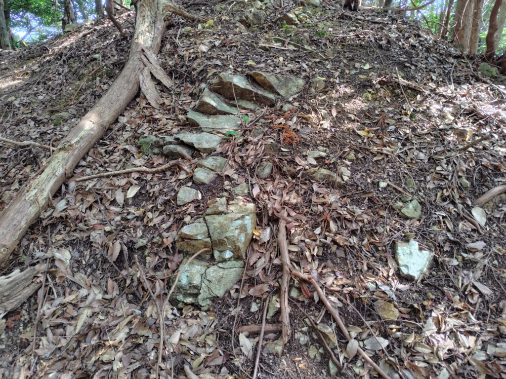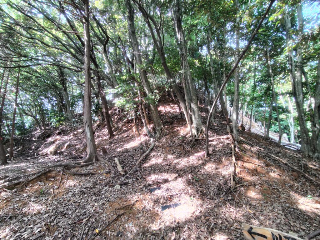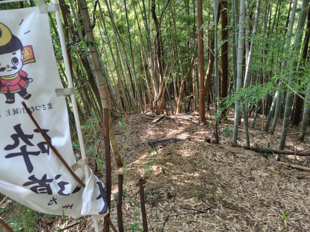 草で覆われてわかりずらいが、この辺は小さな曲輪が連続して築かれており天王山と云われる場所だと思われます。