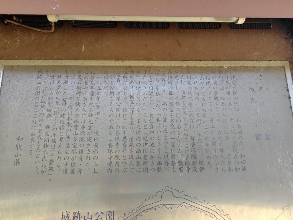 雑賀城は和歌浦に連なる小さな丘の上に築かれた山城で山麓には養珠寺の妙見堂が建っています。攻め方が悪かったのか?雑賀城の足元にある城跡山公園(津屋公園)から攻め込みました。雰囲気はあったのですが妙見堂の一部って感じの山城でした。