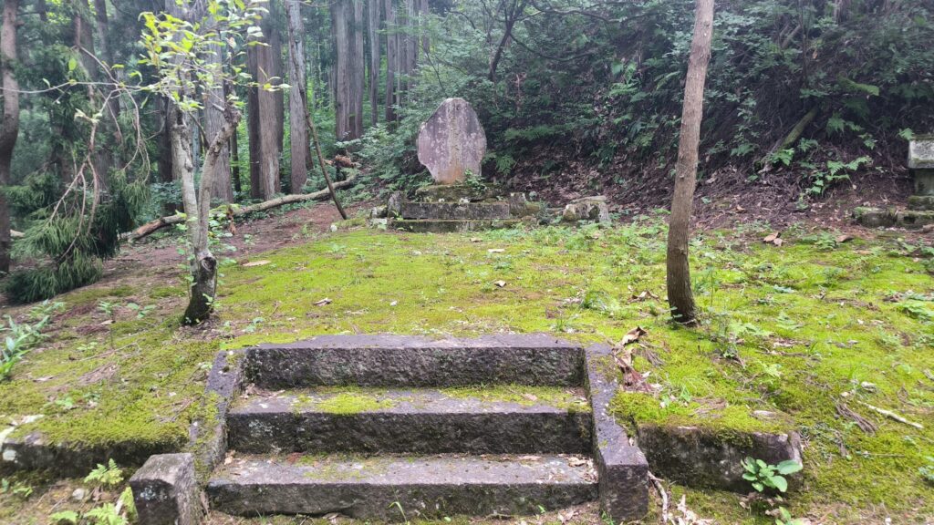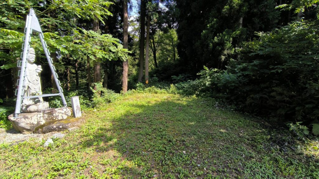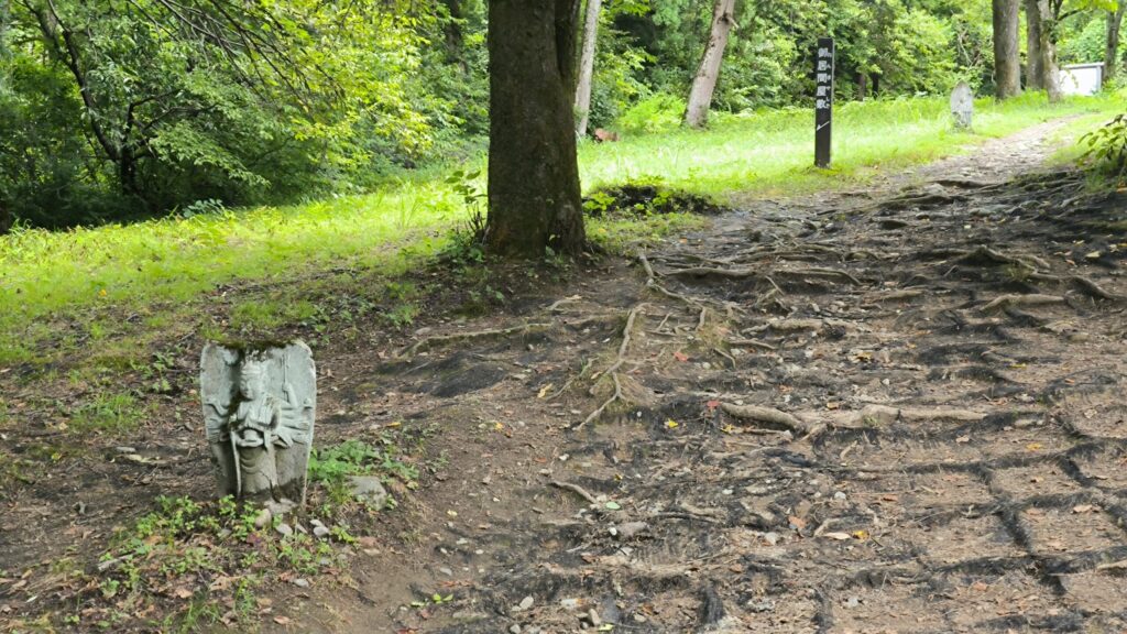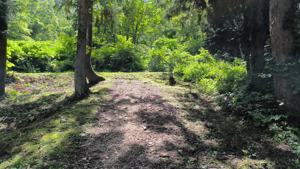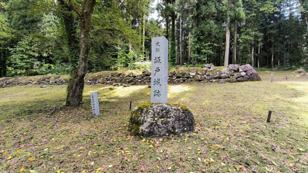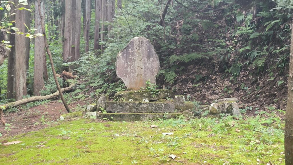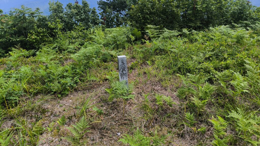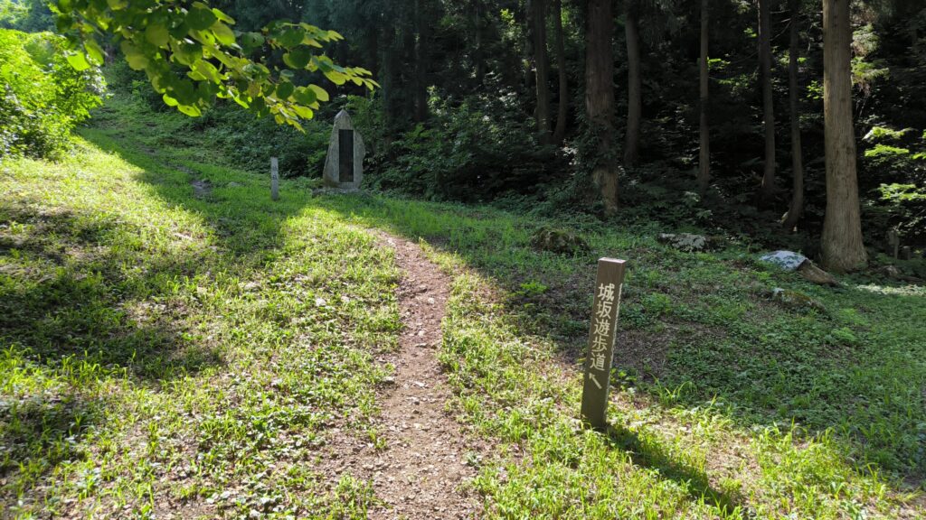 坂戸城跡の石標がありました。もうもどろっかな。クマ怖いし。。
