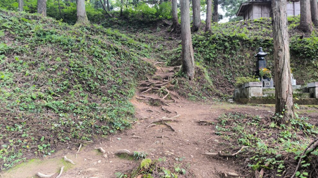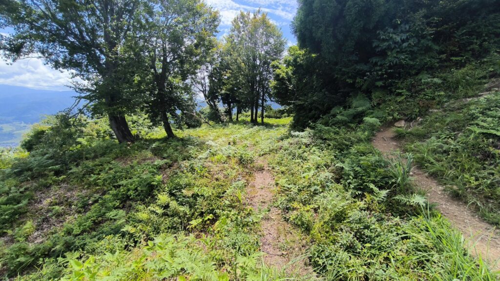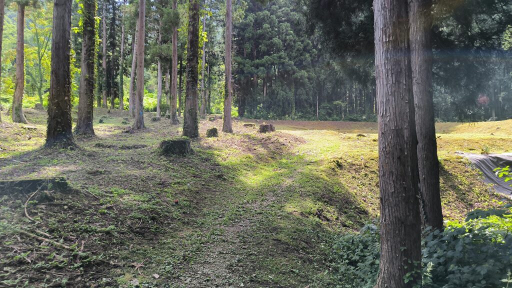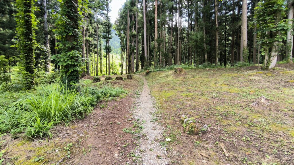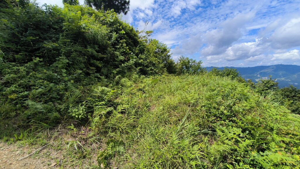 曲輪跡が続いているではないかと思いますが、説明がないので良くわからないですが、土塁は綺麗に残っているので見所としてはおすすめです!