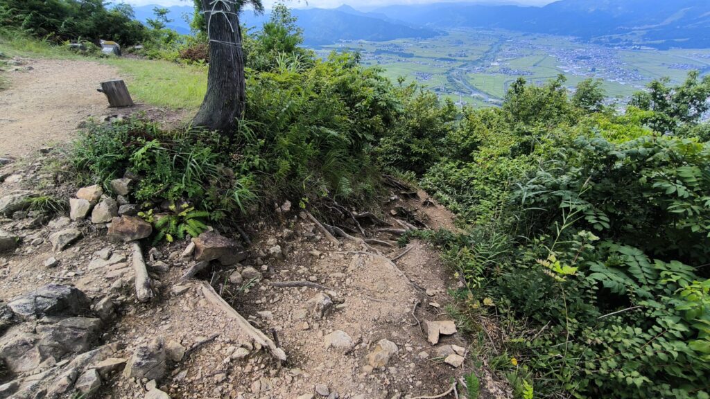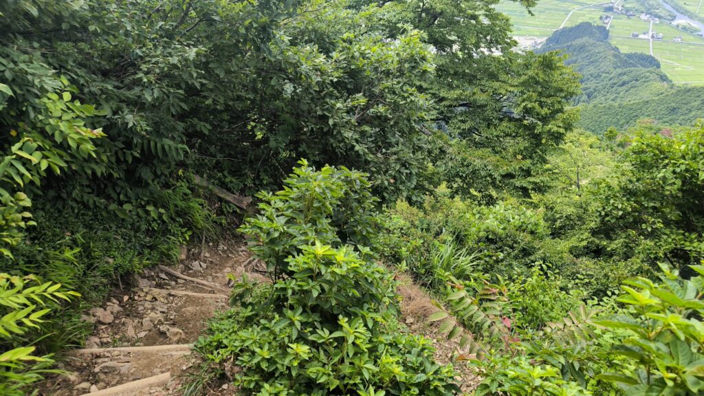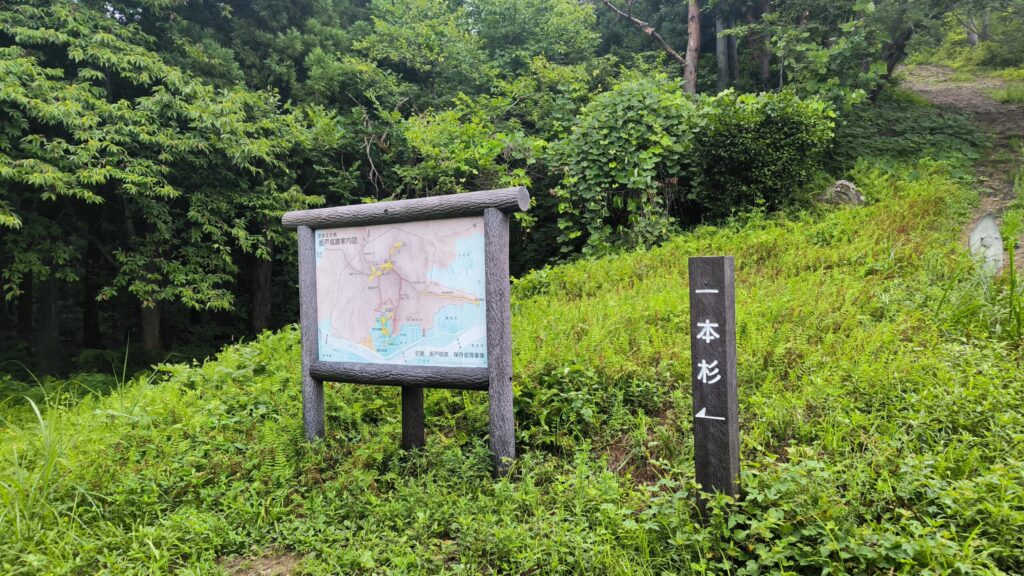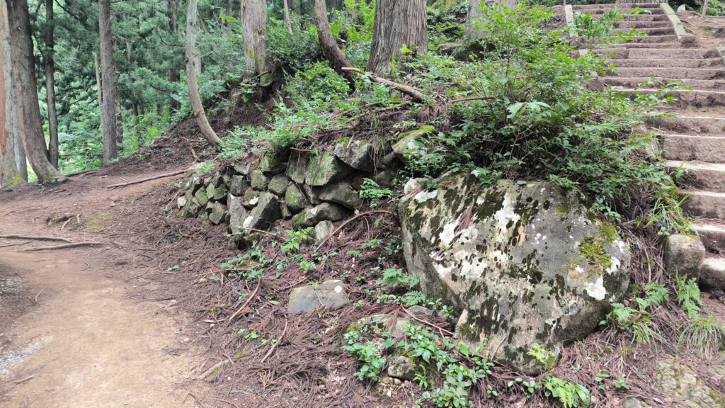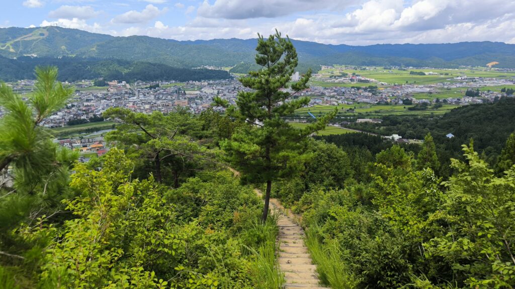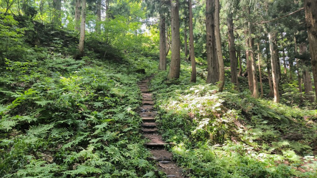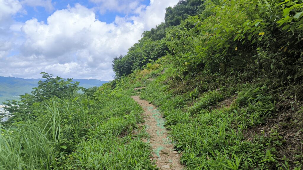 登るルートが2つあるみたいですね。青い方が距離は長くなるけど比較的緩め、赤い方は距離は短くなるけど急な登りが続く道のようです。自分は登りは赤いルート(城坂ルート)で下りは青いルート(薬師尾根ルート)を選びました。
