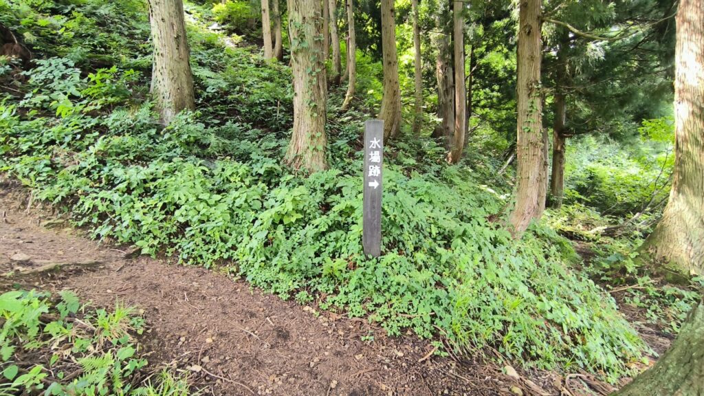 水場跡の案内がありますが、完全に薮なので今回は遠慮して上を急ぐことにしました。