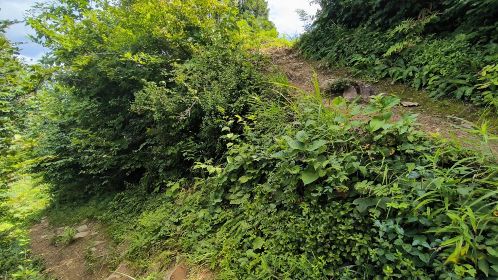 なんか石垣に使われてたような石が転がってますね。葛折で一気に上がって来てます!