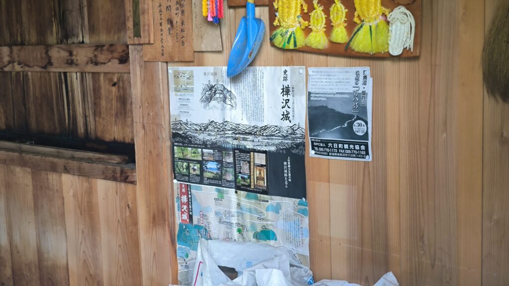 樺沢城の案内が貼ってありました。上杉景勝誕生の地として樺沢城もなっているためですかね?単純に景勝ゆかりの城としてですかね?