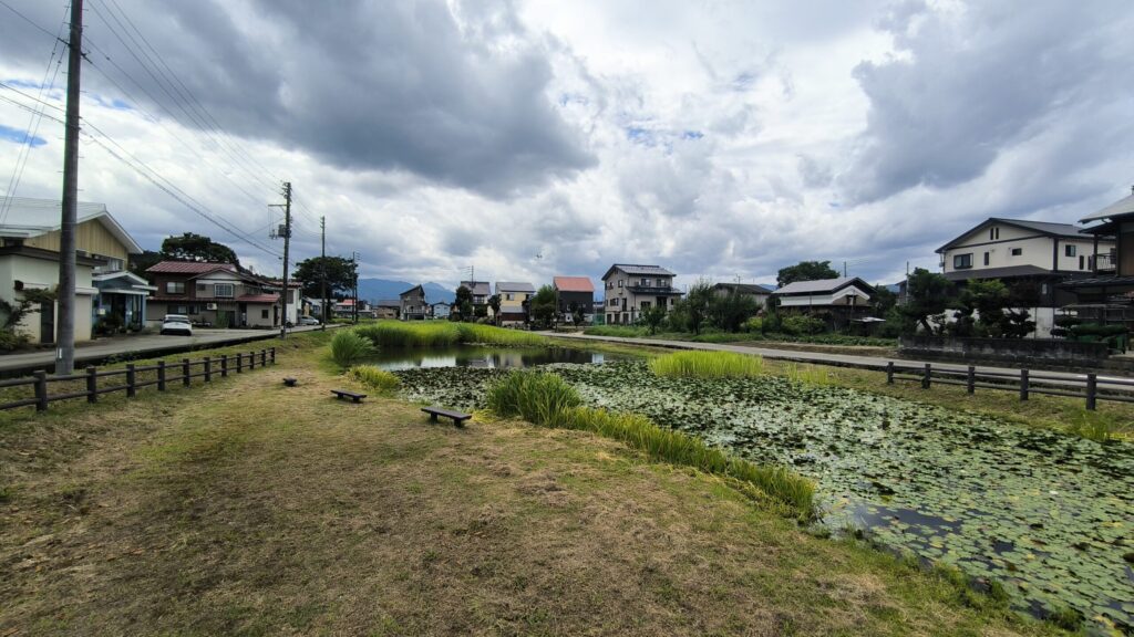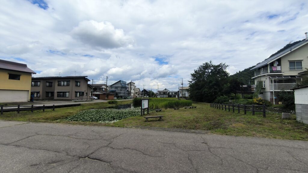 画像だと小さくてわかりづらいかと思いますが、「家臣屋敷跡」とかいた標柱になります。直江兼続はこの辺りで生まれたのでしょうかね?