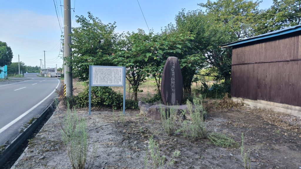 道路の脇にポツンと説明版と石標を見つけました。ちなみにこの写真と反対からくると全くあるのがわからないです。ご注意ください!