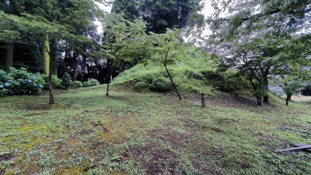 こんもりとした小山が見えますね。なんか説明の杭もあるみたいなので行ってみます。