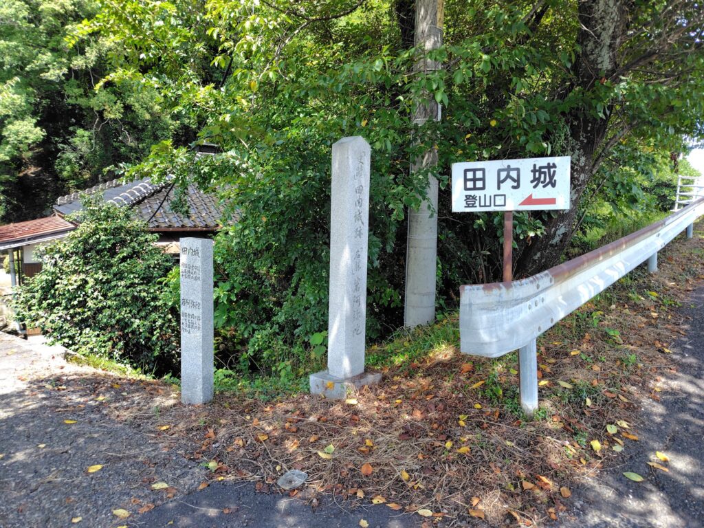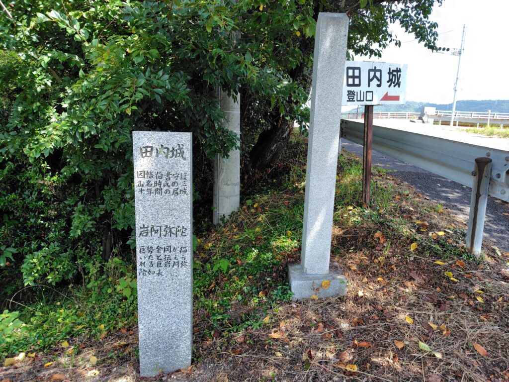 小鴨川沿いの倉吉江北線の道路を北上していくと田内城の入口が見えてきます。