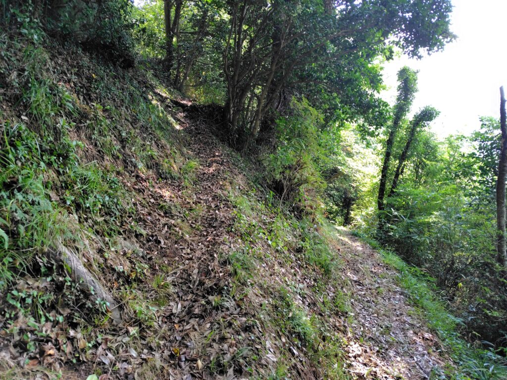 写真ではわかりませんが、斜面沿いに急こう配の山道を登って行きます! 小規模でありますが、山城の特徴でもありますウネウネ道(笑)も小規模ですがありますね♪