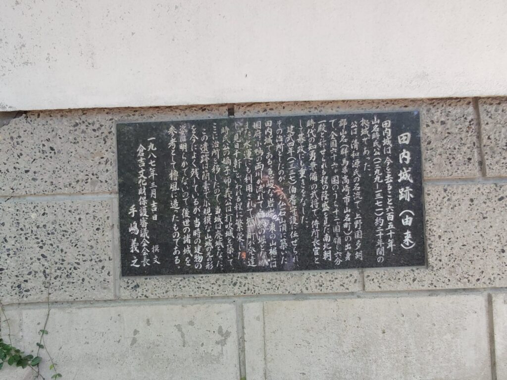 田内城の案内・説明を読んでいて気付いたのですが、山名氏は上記で記載した通り上野国出身の武将で清和源氏の流れを組む新田氏一族のひとつで、後で調べてみると現在の群馬県高崎市の南側の方に『山名町』という地名があり、そこに『山名氏発祥の地』と『山名城』があるみたいなので、今度、行ってみたいと思います♪(o^―^o)ニコ♪