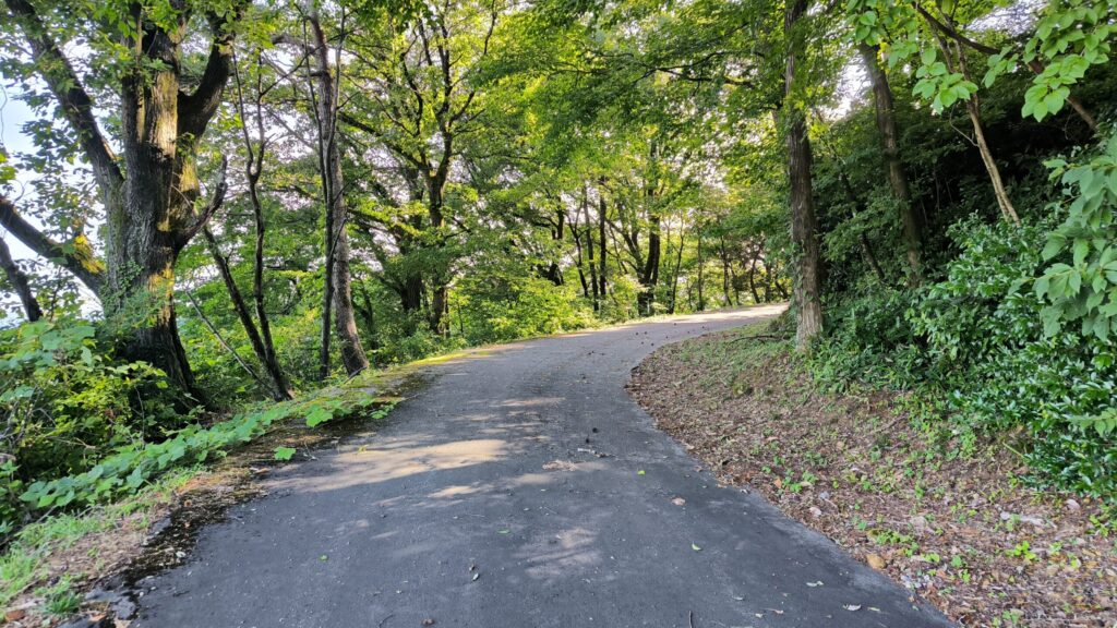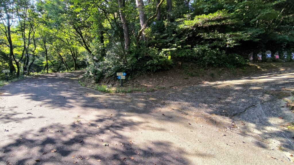駐車場に車を停めて少し道を登っていくと案内板がありました。今回は左ルートから登っていきます!普通の道路を登っていく感じですね。