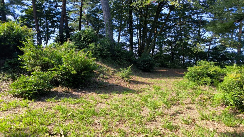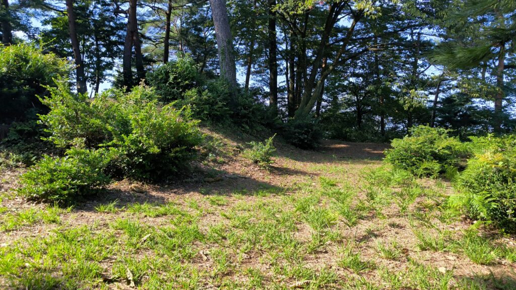 なんか人の手で高く土を持ったような痕跡ですね。櫓台かなにかだったんですかね?