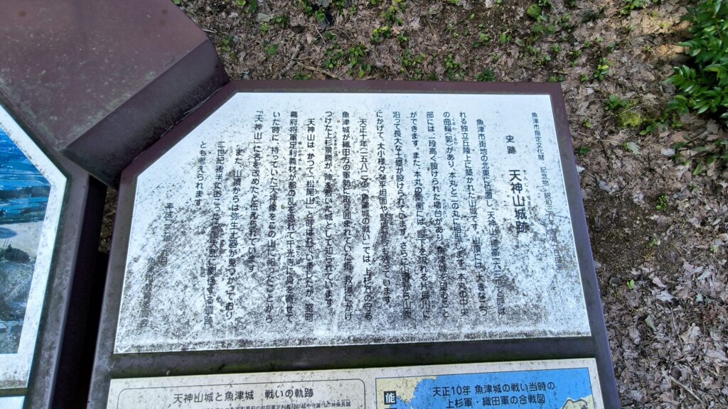 天神山城は織田軍と上杉軍が戦った際に上杉景勝が陣として使用した場所とされています。