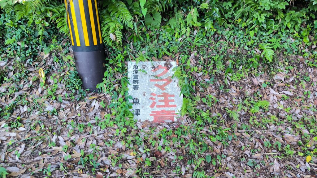 本丸から降りてきたらクマ注意の看板が埋もれているのを見つけました。😨