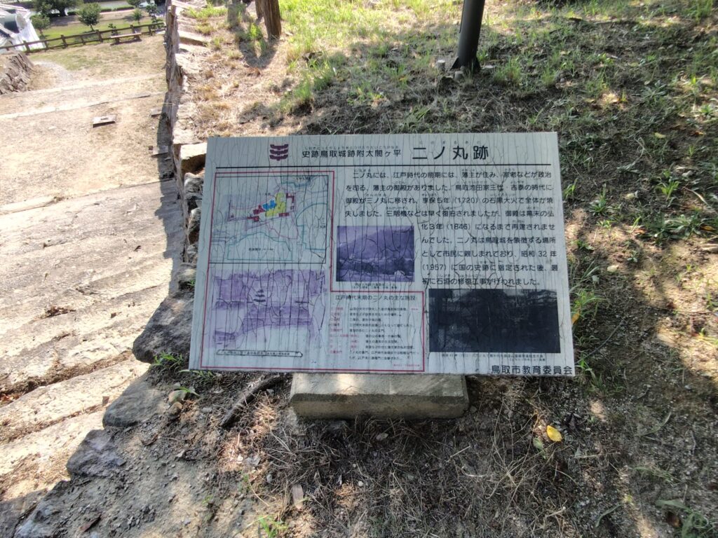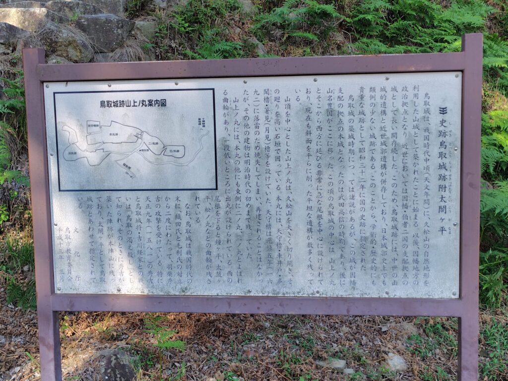 『史跡 鳥取城跡附太閤ヶ平』の説明です。 第二鳥取城攻めの際 豊臣秀吉は、鳥取城と繋がっている山に大規模な本陣を引き多くの武将を配置したようで、そこを太閤ヶ平(たいこうがなる)と呼ぶようですね(=゚ω゚)ノ