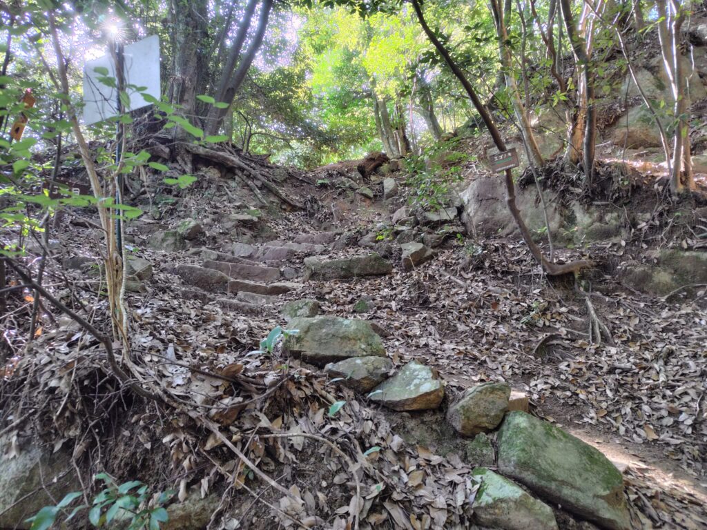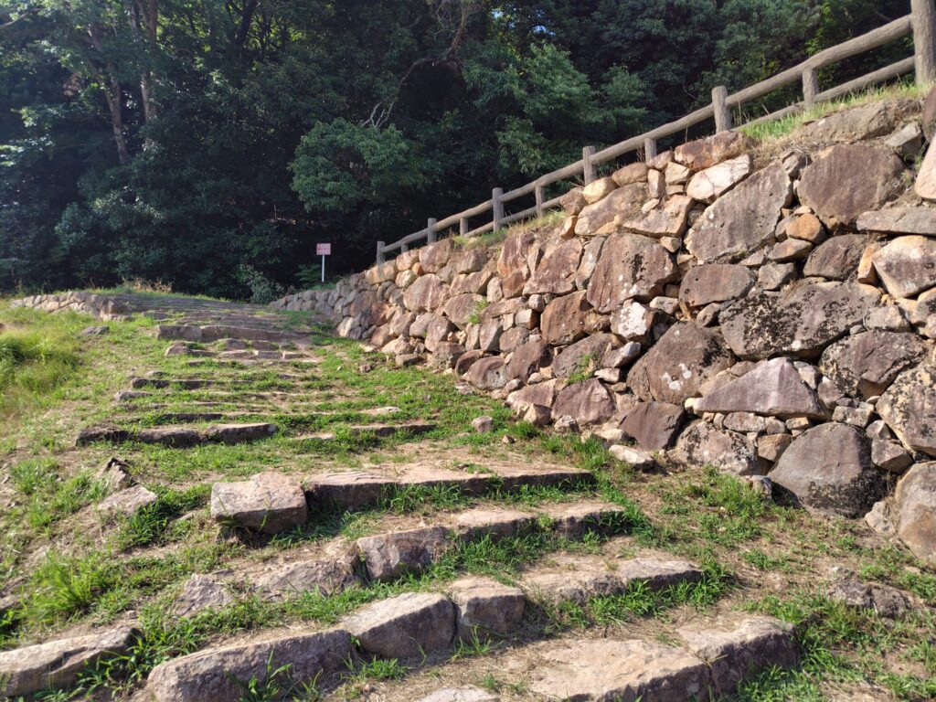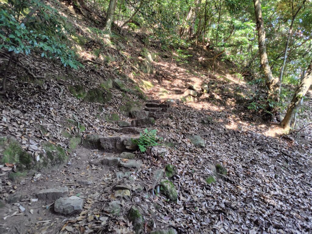 八合目に到着!!!この辺までくれば少しだけ山城感が出てきました(+o+) 岩を利用した門跡かな??? あと少しなので踏ん張らないと!ですね~\(◎o◎)/!