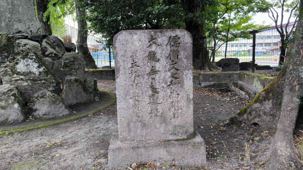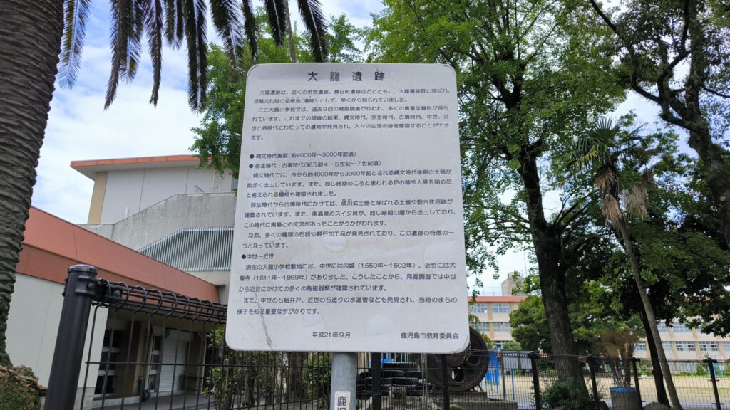 そんな島津貴久の築城した内城ですが、現在は大龍小学校となっており遺構らしきものはほとんど残っておりません。残っていない理由としては、内城は鹿児島城に移った後に島津貴久と義久の菩提寺である大龍寺が建てられました。そして、幕末を迎え、明治2年になると廃仏毀釈により大龍寺は廃寺となって破却されたため残っていないようです。