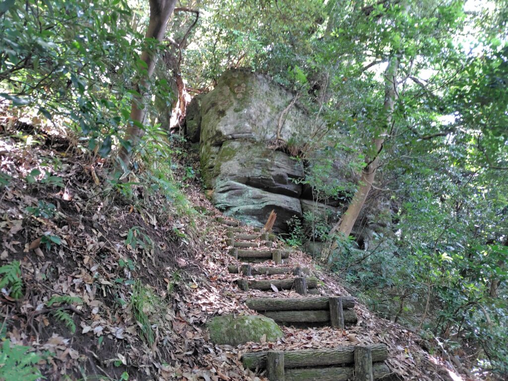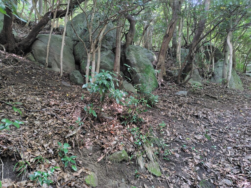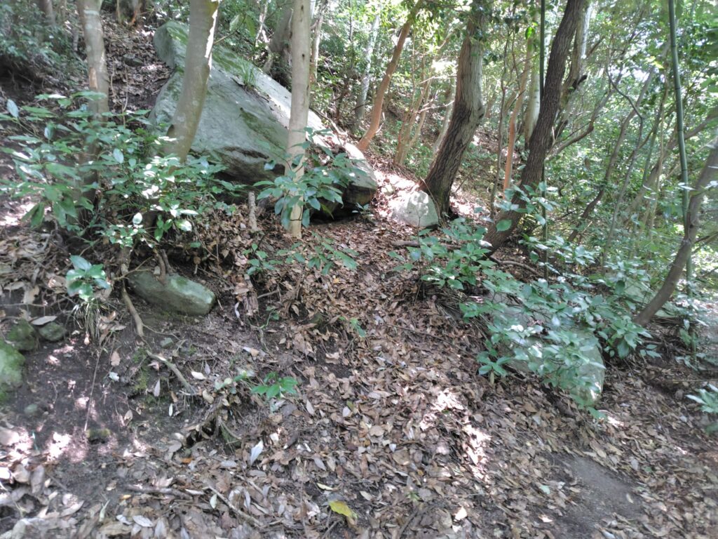 加工された岩がゴロゴロ・・・けど西日本は岩山が多いってイメージなので、加工された石と天然の石を加工したものと、天然の石・岩を利用したものと・・・めちゃめちゃ山城を楽しむことが出来ますね