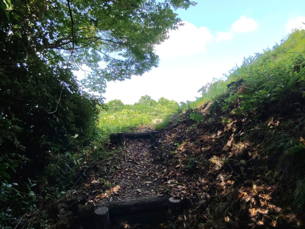 急勾配の『天女のあしあと』を登って行きます! 戦国時代では天女どころが最後に地獄の急勾配だったでしょうね~( `ー´)ノ あと一息です!!!!